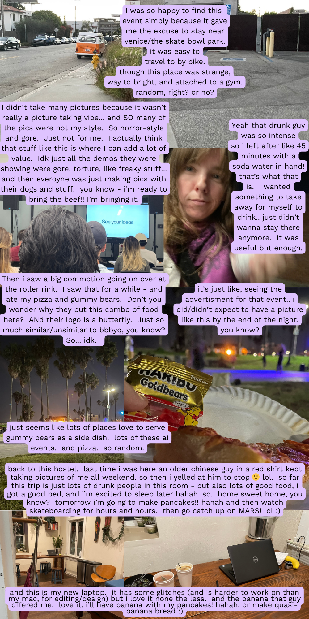 Okay… this the first stop for the BIG EVENT THAT IS OUT OF THIS WORLD which I am attending the next few days in LA. But first, I arrived a day early, so that… I can watch skateboarding!? Maybe hahaha. It’s my favorite. Also, there is an Ai event right nearby Venice Beach. So… I’ll arrive a bit early, go watch skateboarding for an hour, then go to the Ai event and learn more. Probably they’ll serve dinner: excellent! Then probably when it’s over it’ll be too dark, the skateboarding will be over… so I’ll just chill at the hostel, work… and then wake up: watch skateboarding… and then head off to my event tomorrow. Do you wanna know what it is? THE OUT OF THIS WORLD event I’m attending (cause the first time I attended I impulsively joined the ‘lifetime membership’ of the society hahahah. I’ll tell you tomorrow. Until then, let’s learn more about Ai, okay my guy? (but surprise, I have a blog I wrote on the airplane, so I think that one broke the surprise.. that and/or the headlines)