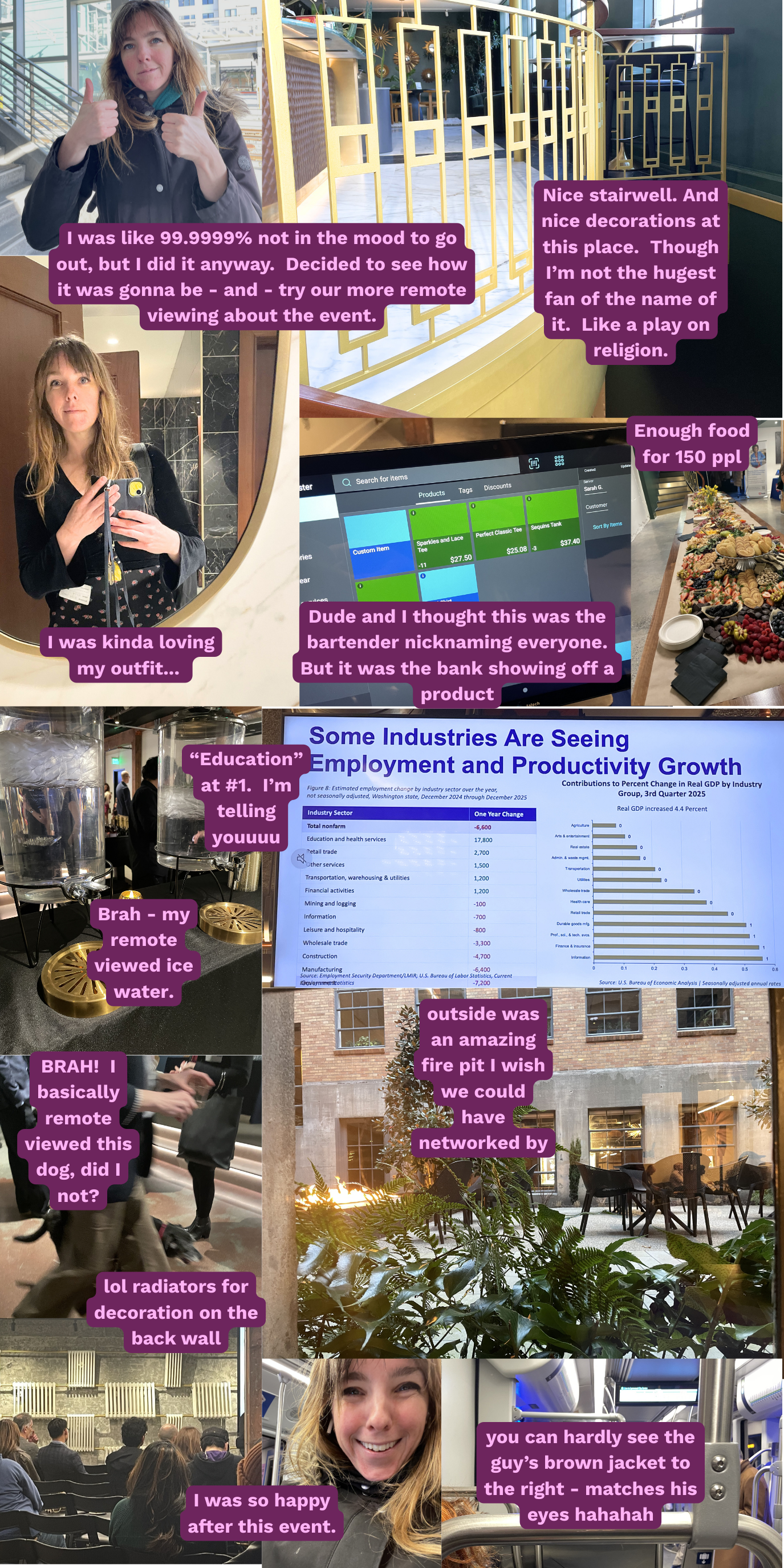 Why Attend: Like I said, the closer I get to this event… the less I want to attend. Just cause it sounds like a million events I’ve attended in this city about fundraising and money and capital and blah blah. But, I will try out “remote viewing” before the event (since my new schedule is to intentionally “remote view” on Thursdays). and see how much comes true - ontop of ALSO seeing what I learn from this event. And dressing extra feminine compared to usual, and just seeing how that goes. So, you know. There’s just enough reason to go.