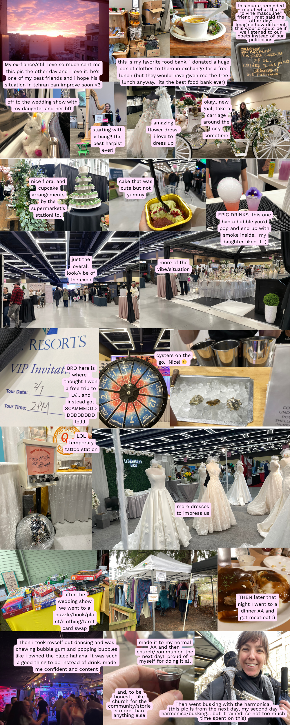 Topics: Wedding Expo, Clothing/Puzzle/Book Swaps, Toddlers Entertained, Expos, Convention Center, Weddings, Wedding Culture, Bride Culture, Bubbles, Harmonica, Busking, Bravery, Courage, Tips, Clothing Swaps, Tarot Cards